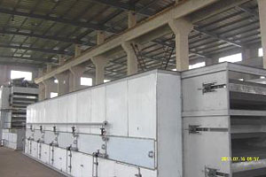 干燥機工作時,冷空氣通過熱交換器進行加熱,采用科學合理循環方式,使熱空氣穿流通過床面上的被干燥物料進行均勻的熱質交換,機體各單元內熱氣流在循環風機的作用下進行熱風循環,**后排出低溫高濕度的空氣,平穩高效地完成整個干燥過程。